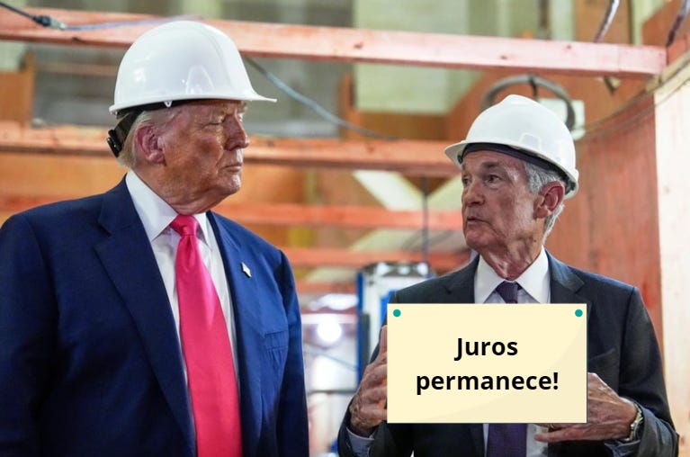 Fed Funds: 45% de chance de corte já na próxima reunião, em setembro. A probabilidade caiu em relação aos 63% de ontem, mas o mercado ainda aposta em dois cortes até o fim do ano.